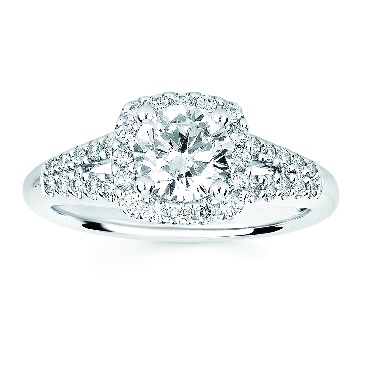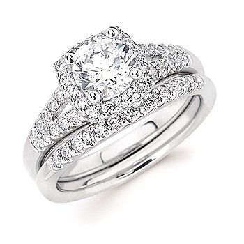 Engagement Ring Halo Bridal: 1/3 Ctw. Diamond Halo Semi Mount available for 1 Ct. Round Center Diamond in 14K Gold