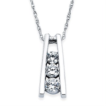 1/8 Ctw. 3 Stone Diamond Ladder Pendant In 14K Gold With 18" Chain